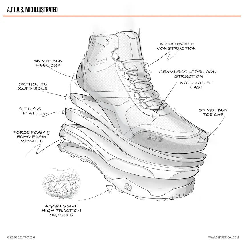 Este es el 5.11 A/T Mid. Es de media caña, no de medianoche, aunque sin duda te encantará en ese turno. Con protección de TPR moldeado en 3D en la puntera y el talón, una parte superior de malla soldada y una suela exterior de alto rendimiento y alta tracción, el Sistema de Asistencia de Carga Todo Terreno (ATLAS) mitigará los rigores de un trabajo pesado (y no en vano). El modelo de media caña se diseñó para soportar tu peso. Trabaja más tiempo, con menos estrés, incluso con mucha carga.
